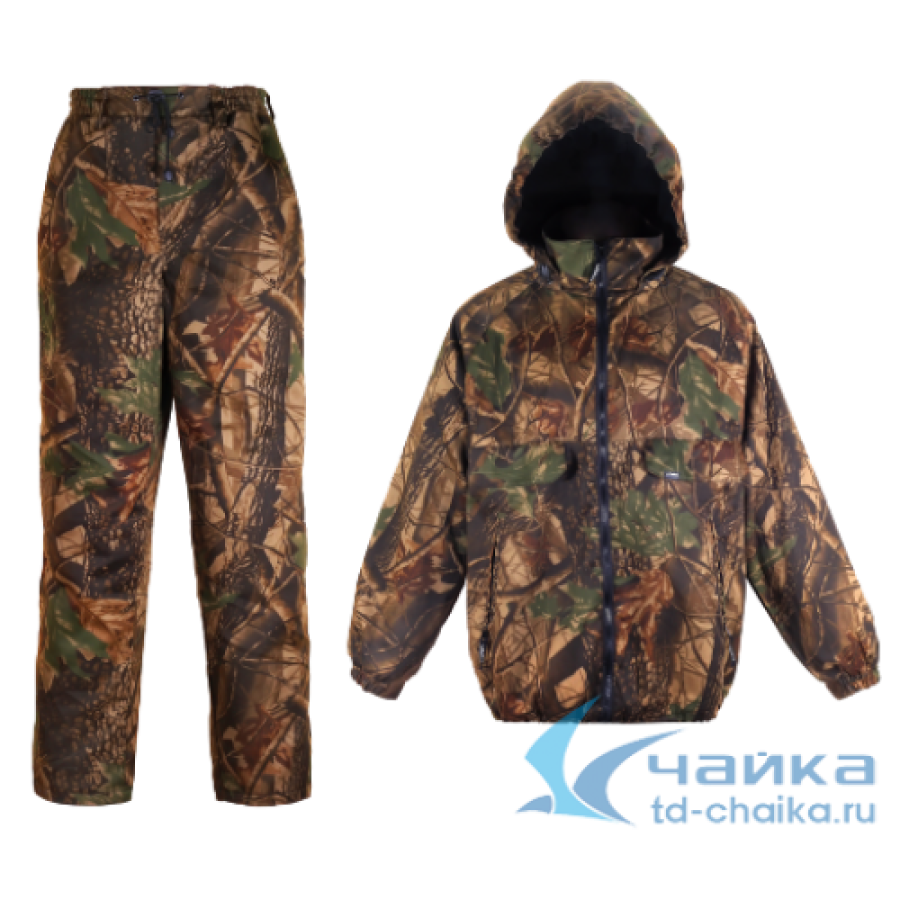 Универсальный костюм для охоты и активного отдыха, как на воде, так и в лесу. На куртке один внутренний и четыре внешних кармана, воротник-стойка, низ рукава фиксируется манжетой с эластичной тесьмой, низ изделия и капюшон регулируется эластичным шнуром. На брюках три кармана, пояс брюк на эластичной тесьме со шлевками под широкий ремень, низ регулируются резинкой. Температурный режим: от 0Со до +10Со.