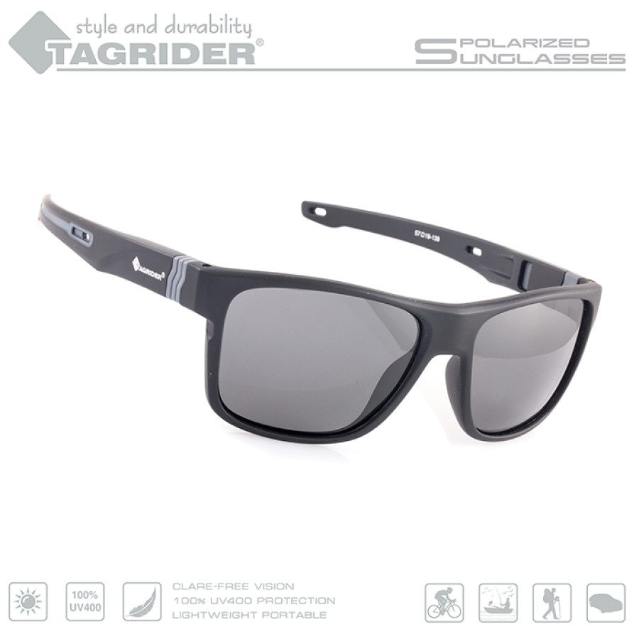 Поляризационные очки Tagrider оснащены прогрессивным 400 UV фильтром защиты от ультрафиолетового излучения, что позволяет полностью убрать негативное воздействие света на глаза и использовать их на солнце с любой интенсивностью. Прогрессивный светофильтр сохраняет всю гамму цветов предмета и усиливает свое действие с увеличением интенсивности света. Стекла с многослойной поляризацией снимают блики с любых отражающих поверхностей и делают изображение более чётким. Затылочный держатель с фиксатором, предотвратит падение и обеспечит надежную посадку очков даже при активном движении или занятии спортом. Очки выполнены из гипоаллергенного ударопрочного полимера марки ABS. В комплекте специальная карточка для проверки поляризации очков
