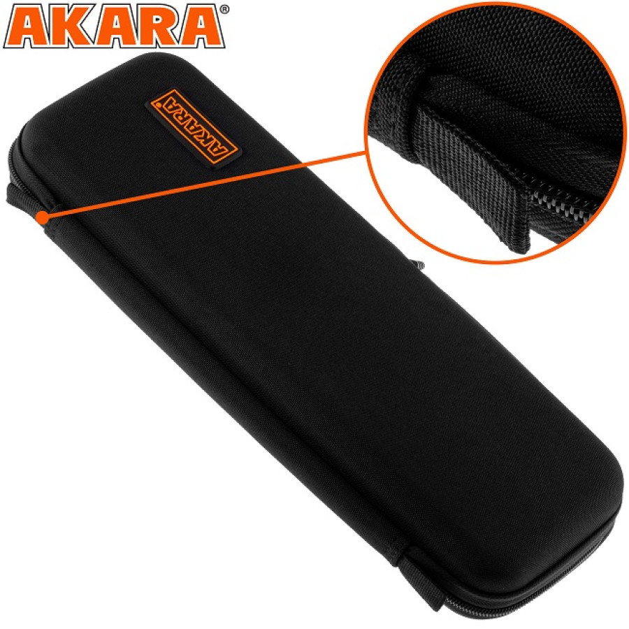 Удобная молния с пуллером позволяет легко открывать и закрывать кейс, даже если на ваших руках перчатки. Этот кейс станет незаменимым помощником для всех любителей зимней рыбалки и обеспечит сохранность ваших любимых удочек, в том числе и Akara Finezza.