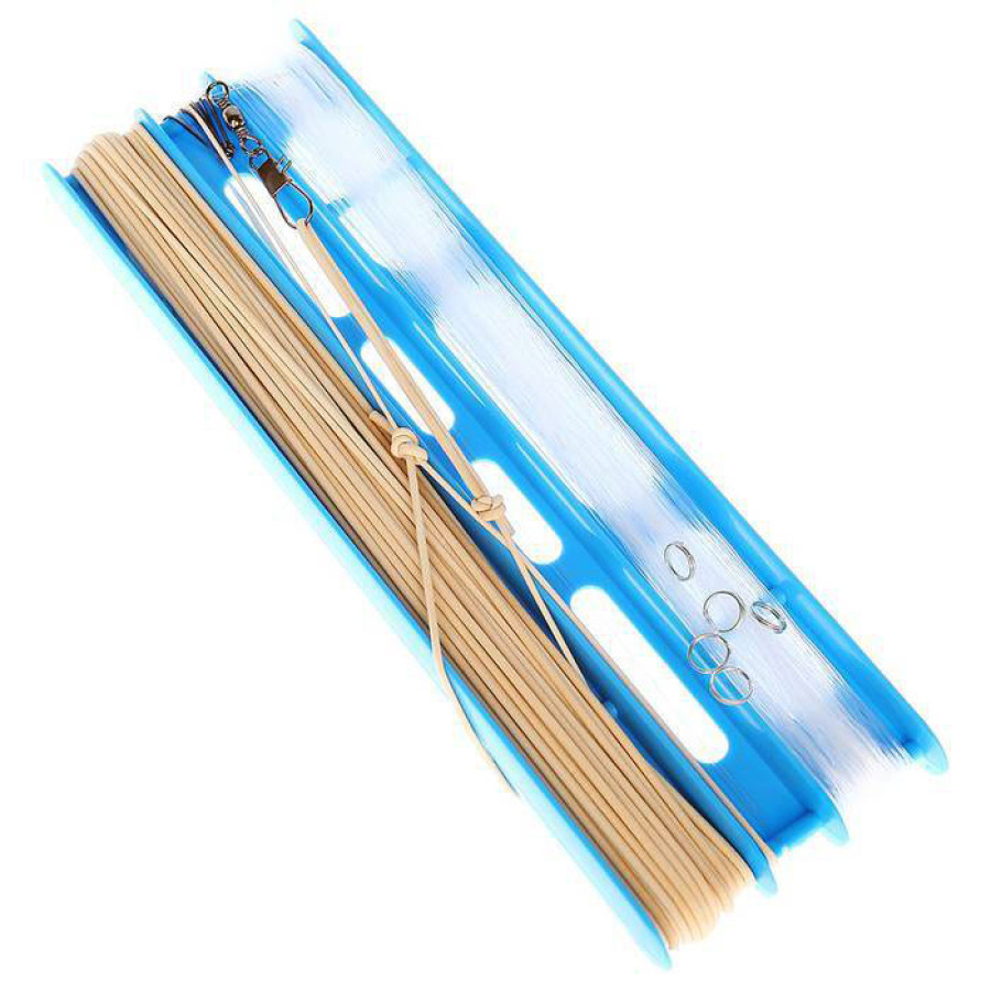 Донка на мотовиле компактна, несколько донок можно уместить в небольшой сумке и отправиться на рыбалку. Основная леска оканчивается карабином, к которому привязана резинка.