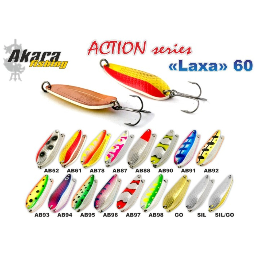 Блесна колебалка Akara Action Series Laxa имеет большой весовой ряд в двух размерах. В зависимости от размера и веса, колебалка может быть использована для ловли на небольших речах в заброс (13, 17 и 18г), а так же троллингом на озерах. Веса 21, 24 и 28 г могут быть использованы для ловли на среднем и быстром течении, а в случае необходимости при ловле на глубине. Прогонистое тело блесны и классический изгиб позволяет существенно менять скорость проводки, а так же использовать рывковую проводку. На паузе Laxa хорошо сыпется. Широкая цветовая гамма состоит из пищевых и раздражающих расцветок, что позволяет подобрать цвет под конкретные условия лова: активность хищника, освещенность и прозрачность воды.