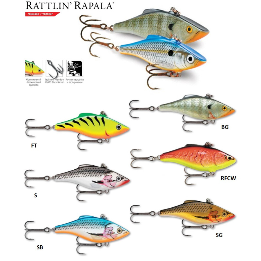 Звуки привлекают внимание рыбы и провоцируют ее к поискам. Модель Rattlin’ Rapala эмитирует акустические волны, частотой, напоминающей "голоса природы" в водной среде. Секрет звука в сочетании со специфическим типом колебания (патент Rapala®) корпуса воблера, делают приманку особо привлекательной. Независимо от того, сделаете ли Вы резкий рывок, или будете водить медленно, погремушка будет звучать как звонок, приглашающий крупных хищников на обед.