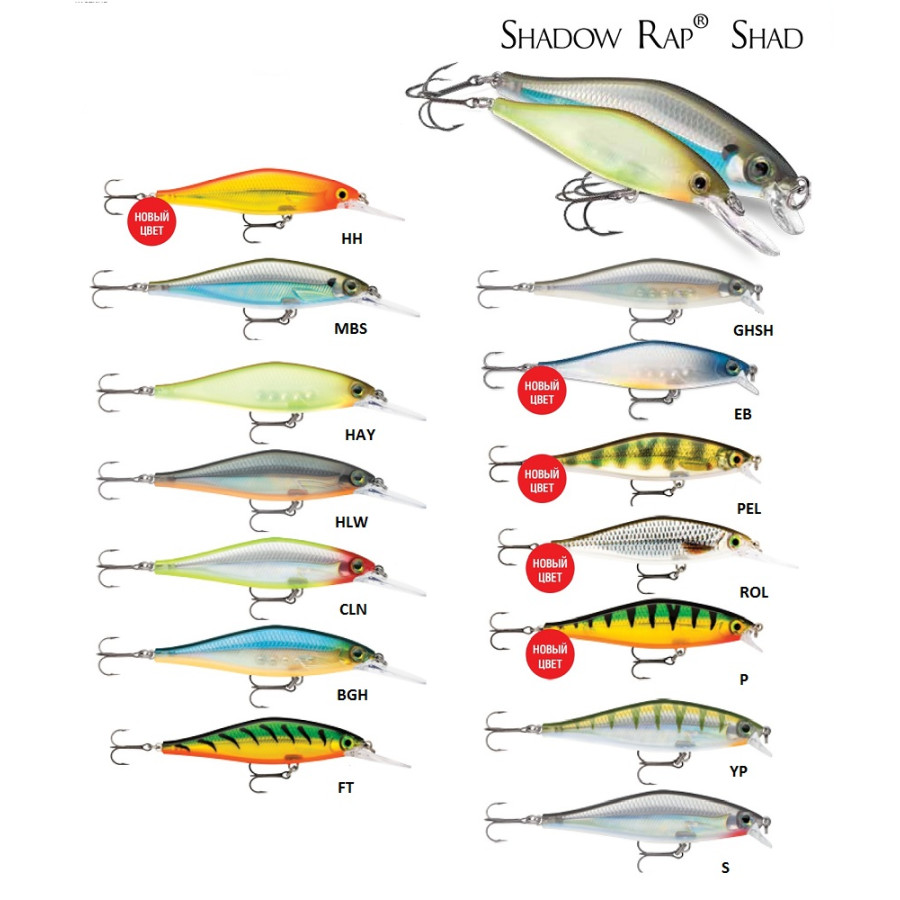 SHADOW RAP SHAD новинка 2017 года. Медленно всплывающий воблер обладает широким профилем, который отражает больше бликов в воде и тем самым позволяет ловить как в быстром темпе, так и в медленном с едва уловимым подергиванием. Имеет текстурированный корпус, на который нанесены полупрозрачные и матовые цвета. Предназначен для ловли щуки и окуня.