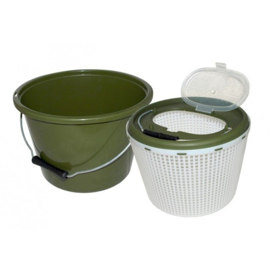 Кан Akara 324 10 л круглый – кан рыболовный круглой формы. Применяется для сохранения живца, прикорма, пойманной рыбы и др. Цвет кана темно-зеленый. Диаметр 33см, высота 23 см.