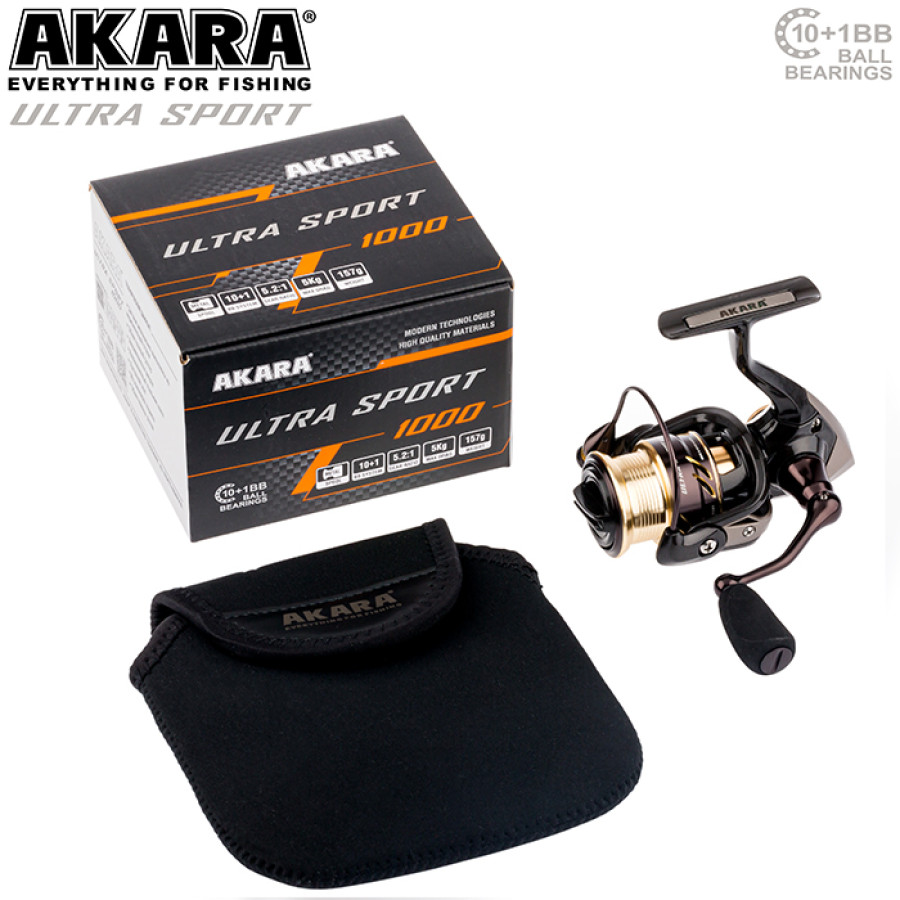 Akara Ultra Sport - серия безынерционных катушек с передаточным числом 5,2:1. В катушках размещены одиннадцать подшипников, которые позволяют эксплуатировать катушку в экстремальных условиях и выдерживать значительные нагрузки при вываживании рыбы. Корпус катушки, ее ротор, изготовлены из ударопрочного композитного полимера. Усиленная дужка лесоукладывателя с конусной направляющей и подшипниковым роликом, предотвратит перекручивание лески при забросе приманки и позволит идеально уложить леску при намотке на шпулю. Мультидисковый передний фрикцион с промасленными войлочными шайбами позволяет тонко отрегулировать фрикцион и настроить снасть так, чтобы предупредить возможные рывки рыбы и ее сход.