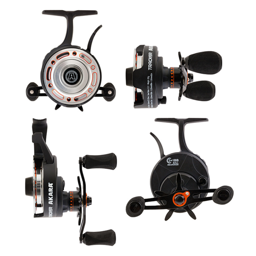 Катушка мультипликаторная зимняя Akara Tracker 3+1 bb с курком. Мультипликаторная катушка для оснащения зимних удочек для отвесной ловли. Катушка позволяют вываживать рыбу с глубины, используя только катушку, как при ловле на спиннинг – тащить рыбу руками за леску не обязательно. Шпули открытые, позволяют зрительно контролировать намотку лески на шпулю. Катушки не снабжены лесоукладывателем. Отличительной особенностью катушек является удлинённая ножка, которая даёт достаточную свободу для пальцев при удержании удочки в процессе вываживания. Облегченная алюминиевая шпуля. Облегченный корпус. Магнитный тормоз. Регулируемый механизм обратного хода. Дисковый фрикцион. Мгновенный тормоз.