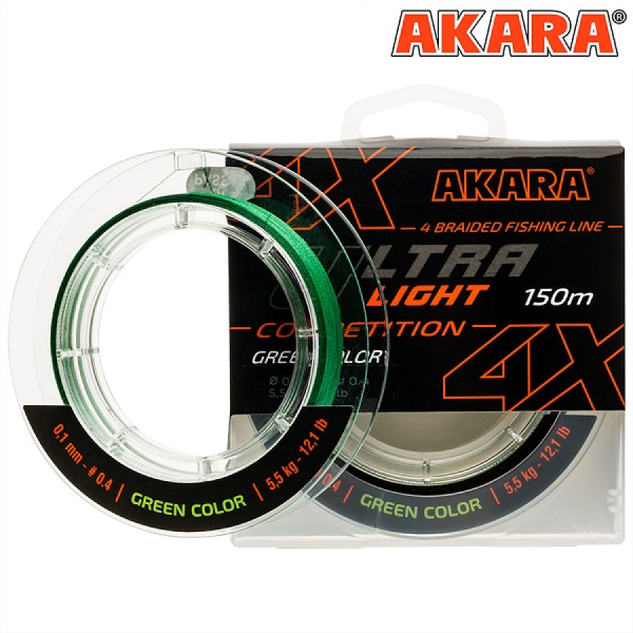 Ultra Light X-4 – универсальный плетёный четырехжильный рыболовный шнур, выпускаемый под торговой маркой Akara. Шнур создан для того чтобы удовлетворить потребности рыболовов в качественном, надежном, прочном и недорогом шнуре. Эффективен для ловли на мелкие приманки. Сплетен из но-вого современного волокна японского производства повышенной плотности. Отличается высокой прочностью и надежностью и подойдет практически для любых условий лова, в том числе для ловли в местах, где высока вероятность зацепов. Ultra Light X-4 имеет круглую форму.