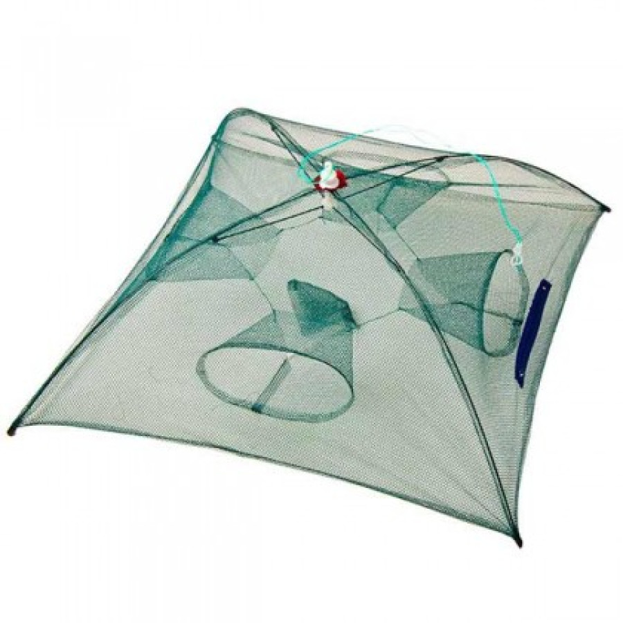 Раколовка основанная по типу зонта. Алюминиевый каркас растягивает сетное полотно при помощи металлических колец, а затем фиксирует его на дугах. Уловистость данной верши очень высокая. Обязательно условие для ловли — использование различных приманок. Верша имеет 4 входных отверстия, конструкция – квадрат . Рекомендована для ловли мелкой рыбы и раков.