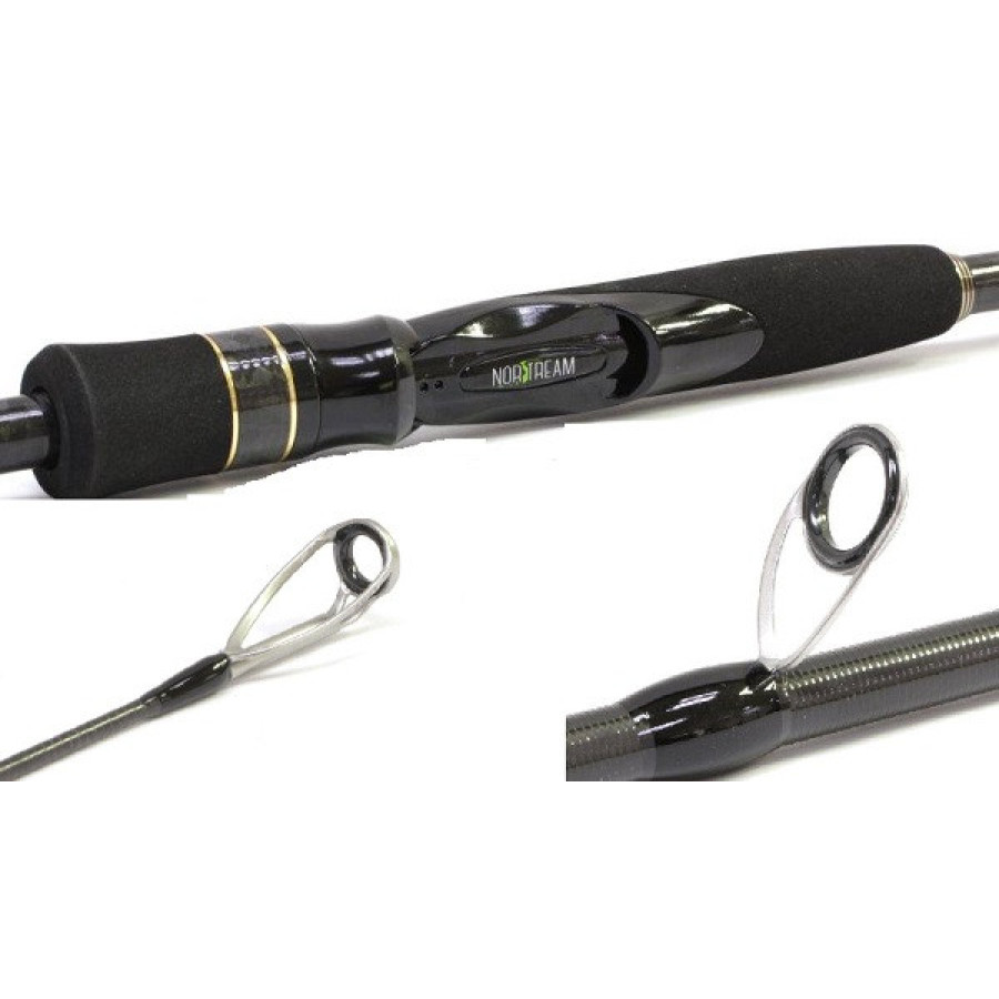 Строй спиннингов – быстрый (fast) с достаточно живой вершинкой, жесткой средней частью и мощным комлем, отвечающим за сдерживающий ресурс. Тест указан максимально точно, при этом, как и у остальных джиговых моделей Norstream, здесь указан тест по весу рекомендуемых грузов без учёта массы самой приманки среднего размера, например, твистера длиной 7-8 см.