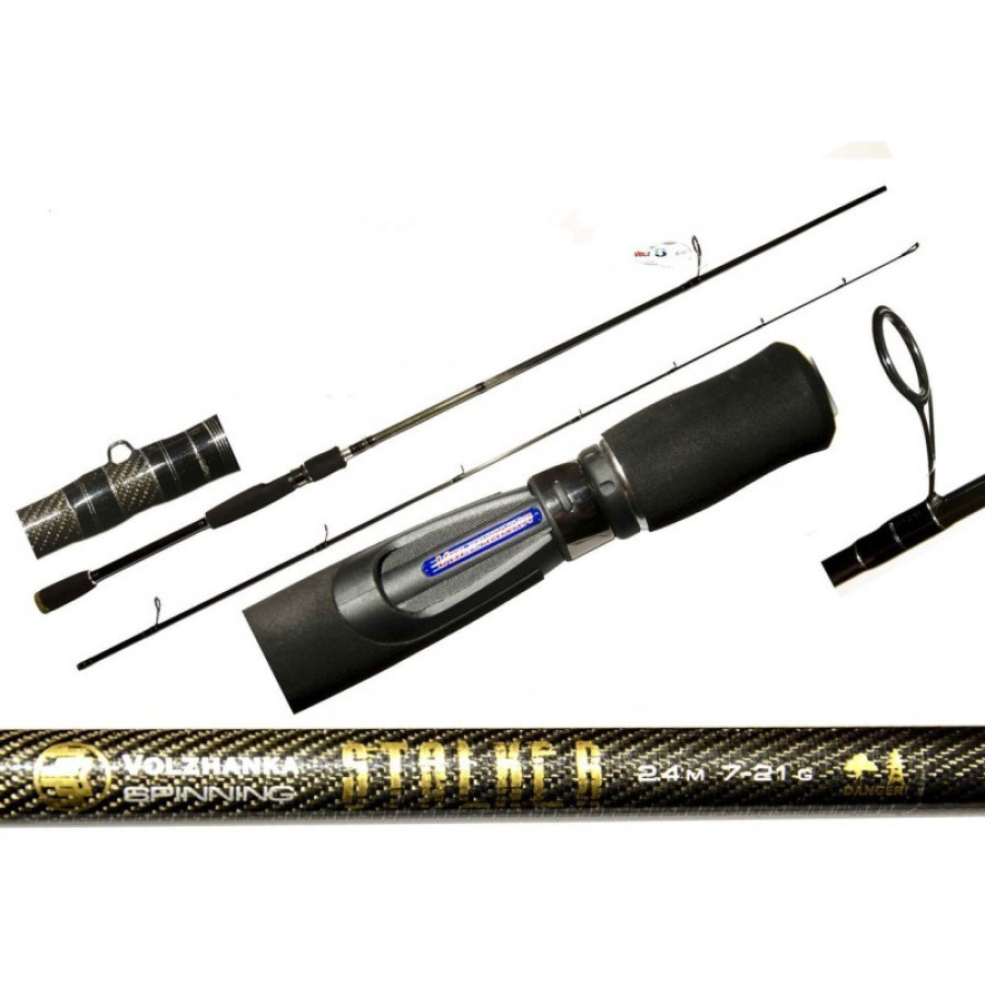 Сталкер 2.4 м, (7-21, 10-30, 15-40 г). Это по-настоящему универсальная серия спиннинговых удилищ. Сталкер прекрасно справиться с любой поставленной перед ним задачей при джиговой ловле как с лодки, так и берега, а так же при работе с любыми блеснами и воблерами.