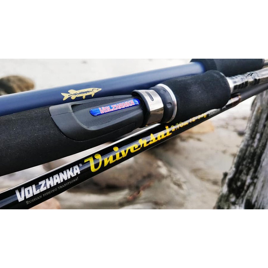 Свойства инновационных графитовых материалов, использованных при создании бланков удилищ этой серии, позволили создать линейку спиннингов с уникальными возможностями. Особый состав связующего и структура препрега обеспечивает бланкам быстроту и «звонкость», свойственную высокомодульным графитам и, в то же время, очень пластичную динамику, когда под нагрузками в работу включается весь бланк, что говориться, «до рукояти». Внешность Универсала не должна вводить в заблуждение - модели предназначены для ловли самой «серьезной» рыбы - крупных щук, судаков и лососевых, в достаточно сложных условиях. Исходя из этого, в линейке представлены только среднемощные и мощные (классы MH, H) удилища. Спиннинги обладают высокой тактильной и визуальной чувствительностью, что позволяет рыболову постоянно поддерживать на проводке устойчивый контакт с большинством типов приманок. Интересной особенностью Волжанки Универсал является способность «подстраиваться» под нужную рыболову технику заброса - с одинаковой эффективностью спиннингист или плавно «разгонит» приманку или «выстрелит» ей в точно выбранное место. Есть еще немаловажное достоинство — при необходимости рыболов может без опасения применять более тяжелые приманки (разумеется, в разумных пределах), которые определены верхними тестами — удилище гарантированно не «провалится» на забросе. Спиннинг оснащен современной фурнитурой от Sea Guide, надежным катушкодержателем и рукоятью с покрытием из плотного EVA. Длины рукоятей гармонично согласованы с длинами удилищ.