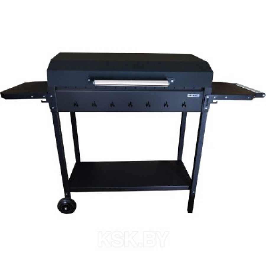 Гриль-мангал "Классик МАКСИ-6" от компании MANKO предназначен для приготовления пищи под открытым небом. Выполнен из стали толщиной 3 мм. Покрыт термостойкой краской, выдерживает 700 градусов по цельсию. Практичный и удобный. Имеется две боковых и одна нижняя полка для продуктов и дров. А так же, колесо для удобного перемещения и крышка барбекю.