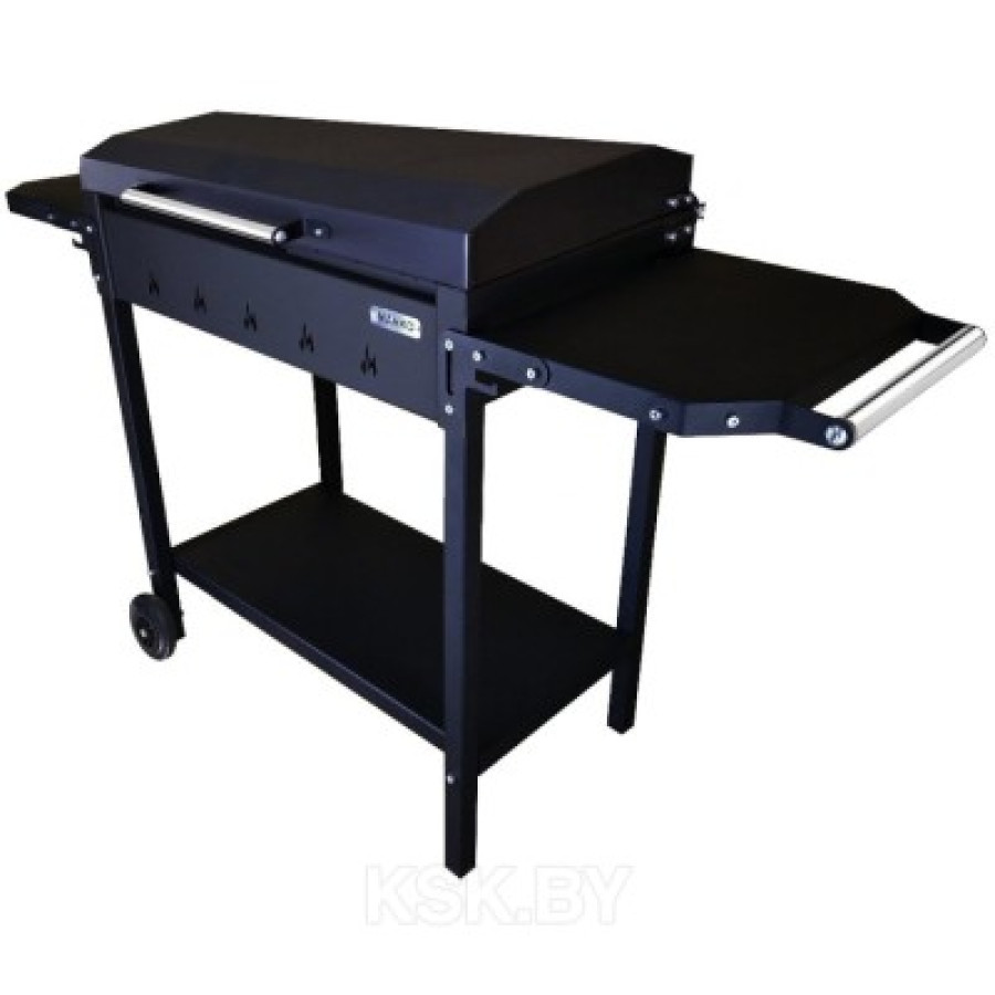 Гриль-мангал "Классик-6" от компании MANKO предназначен для приготовления пищи под открытым небом. Выполнен из стали толщиной 2 мм. Покрыт термостойкой краской, выдерживает 700 градусов по цельсию. Практичный и удобный. Имеется две боковых и одна нижняя полка для продуктов и дров. А так же, колесо для удобного перемещения и крышка барбекю.