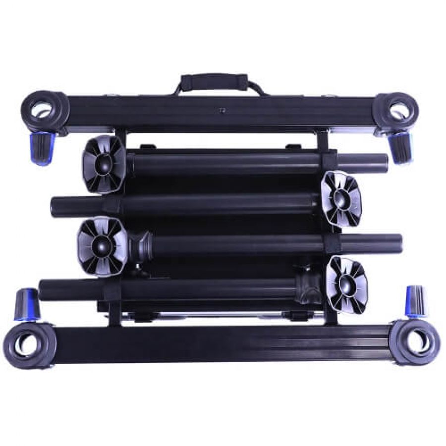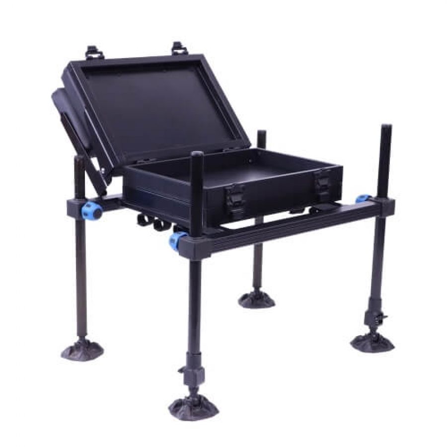 Каждая рама комплектуется двумя передними телескопическими ногами 45/80 см и двумя задними, длиной 45 см. При транспортировке ноги компактно размещаются внутри рамы платформы и пристёгиваются к ее конструкции с помощью «липучек». Сиденье платформы оборудовано спинкой, а спереди - специальной выемкой, которая позволяет надежно фиксировать комель длинного махового или штекерного удилища. Для ровной установки на берегу, рама имеет жидкостной двухплоскостной уровень. Комфортную транспортировку обеспечивают специальная ручка и удобный плечевой ремень, который при желании можно легко отстегнуть. Миниплатформы совместимы с модулями основной платформы, что добавляет им универсализма и позволяет подобрать комплектацию с учетом именно вашей специфики ловли.