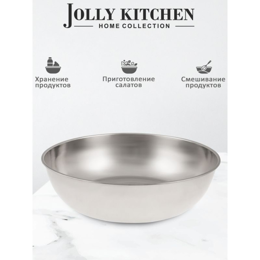 Металлическая миска-таз Jolly Kitchen из нержавеющей стали 31x8,5 см (3,5 л) – универсальная кухонная емкость для приготовления и бытовых нужд. Идеально подходит для замеса теста, маринования, приготовления салатов и хранения продуктов. Благодаря прочной нержавеющей стали не ржавеет, не деформируется и устойчива к царапинам. Гигиенична – не впитывает запахи, легко моется вручную или в посудомоечной машине. Компактные размеры (31 см диаметр, 8,5 см высота) обеспечивают удобное хранение. Зеркальная полировка придает стильный современный вид. Многофункциональна: на кухне используется для теста, маринования, взбивания кремов, в быту – для стирки мелких вещей, хранения инструментов, переноски сыпучих материалов. Практичное решение для дома и дачи.