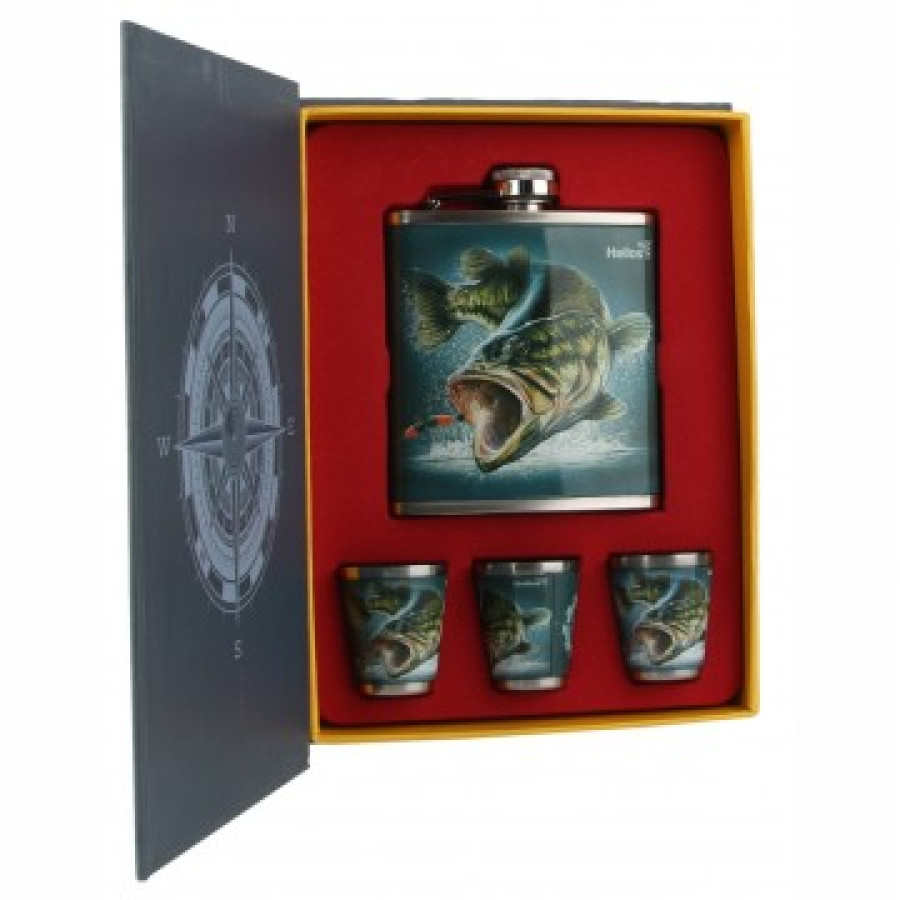 Набор Книга Рыбака Helios фляжка 210мл и 3 стопки