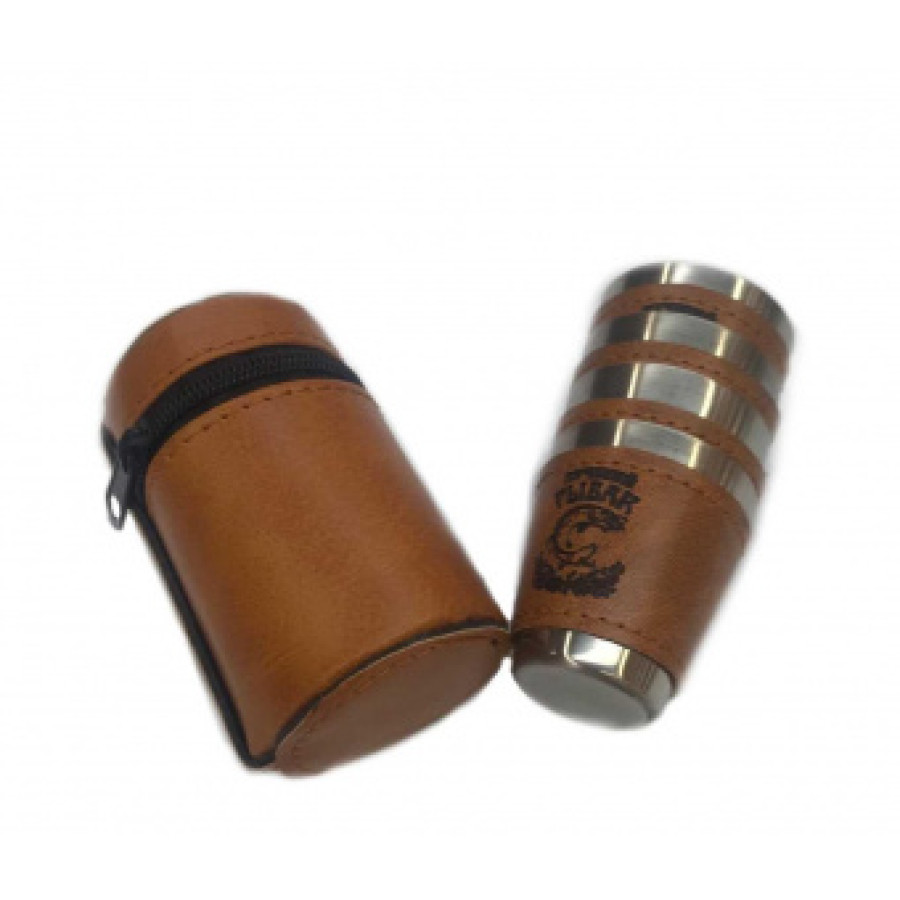 Набор стопок 3 шт в кожаном чехле. Нержавеющая сталь.