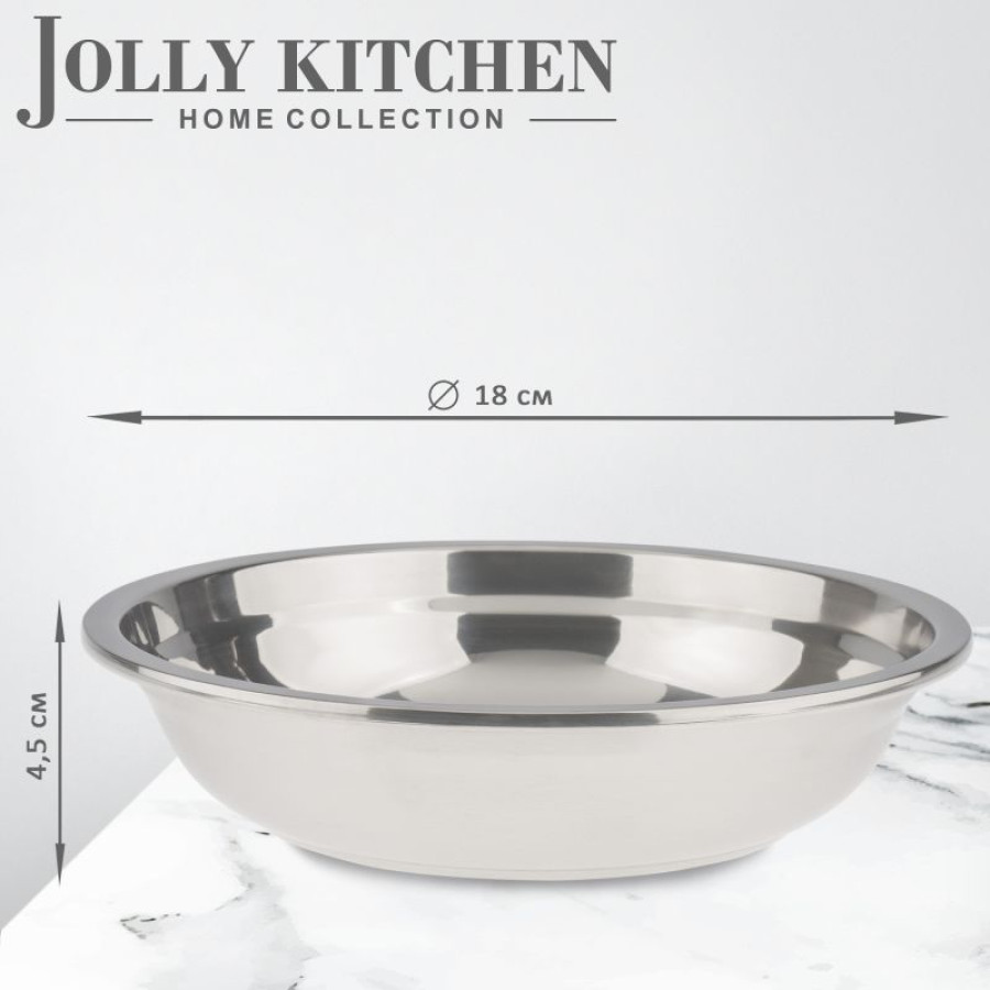 Тарелка Jolly Kitchen из высококачественной нержавеющей стали - идеальное сочетание стиля и практичности для вашей кухни. Основные преимущества: - Универсальность: подходит для подачи супов, каш, закусок и других блюд - Прочность и долговечность благодаря нержавеющей стали - Лёгкий уход: гладкая поверхность не впитывает запахи - Устойчивость к перепадам температур (подходит для горячих и холодных блюд) - Гигиеничность и безопасность использования Практичные особенности: - Сохраняет температуру блюд - Не деформируется со временем - Стильный внешний вид для эстетичной сервировки. Тарелка Jolly Kitchen станет вашим надежным помощником для ежедневных обедов и ужинов, сочетая в себе функциональность и элегантный дизайн.