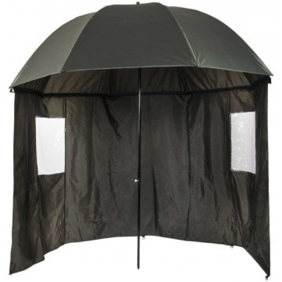 Универсальный зонт из высокопрочного материала Oxford 210D защитит от солнца и укроет при необходимости от ветра и моросящего дождя, благодаря тенту в виде стенки, который пристегивается на молнию. Отлично подойдет для установки на рыболовную платформу (фидерная и карповая ловля). Также будет полезным снаряжением на отдыхе на природе, можно использовать в качестве тента.