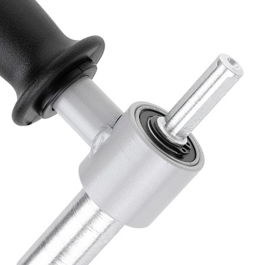 Адаптер универсальный «АШ.2023.ПК» (с подшипниками качения) предназначен для применения аккумуляторного шуруповерта при бурении шнеком лунок во льду при ловле рыбы. Благодаря двум подшипникам качения, увеличивается ресурс работы адаптера и уменьшается процесс прикипания металла. С помощью шуроповерта, данного адаптера и шнека можно легко сверлить лунки, затрачивая на это минимум усилий и времени.