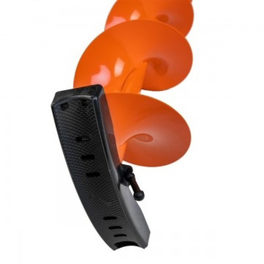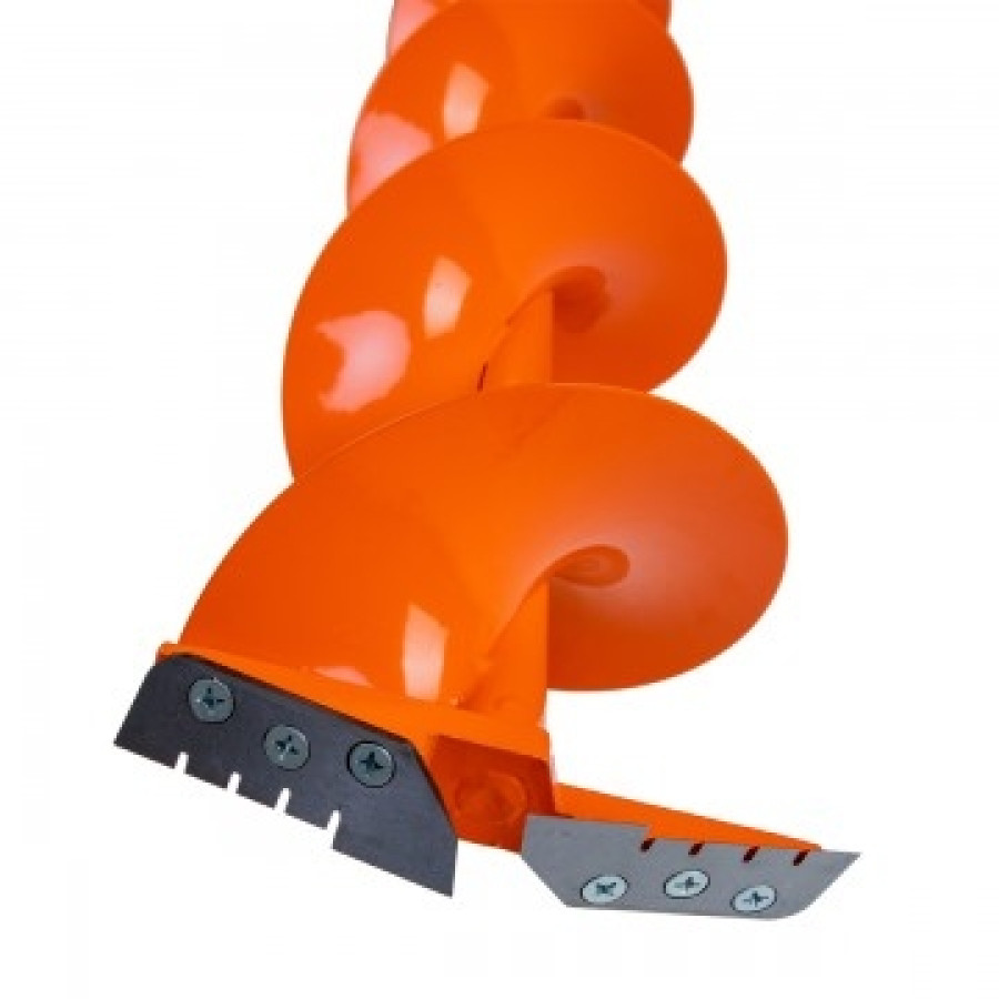 "Цельнотянутый шнек с диаметром 180 мм и правым вращением предназначен для комфортного бурения льда с мото или электродвигателем в любых условиях. Выверенный угол атаки делает бурение быстрым. Надежное полимерное покрытие оранжевого цвета выдерживает резкие колебания температуры и сильные механические нагрузки. Весь цикл полимерной окраски деталей осуществляется на высокотехнологичном оборудовании европейского производства. Цвет продиктован выделением данной линейки шнеков от других ледобуров и шнеков производимых ГК ""Тонар"".
