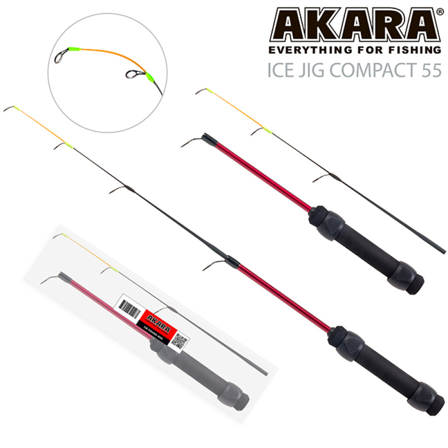 Akara Ice Jig Compact зимняя удочка для блеснения, выполненная в штекерном исполнении, под катушку. Рукоятка из неопрена, поэтому ее комфортно держать рукой на морозе. Бывает в двух длинах 55 см и 70 см. А так же в четырех тестах, от самых легких 3-7 г, до тяжелых 25-50г. Поэтому имея набор таких удилищ, вы сможете ловить всю рыбу, попадающуюся в наших водоемах. Летом эта удочка может использоваться как бортовая, причем ей не нужен кивок, так как верхняя часть колена очень чувствительна, впрочем, это касается и зимней рыбалки. Штекерная зимняя удочка Akara Ice Jig Compact. Тест 28г. Длина 55 см.
